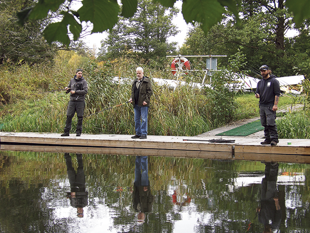 Trots att bryggan är anpassad för funktionsnedsättningar kan alla inte ta sig ner till vattnet. Av solidaritet mot gruppen väljer gänget att stanna uppe på land och testa spöna där och ta en extra kopp kaffe i stället.